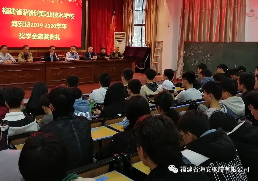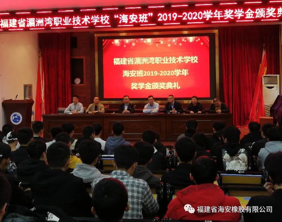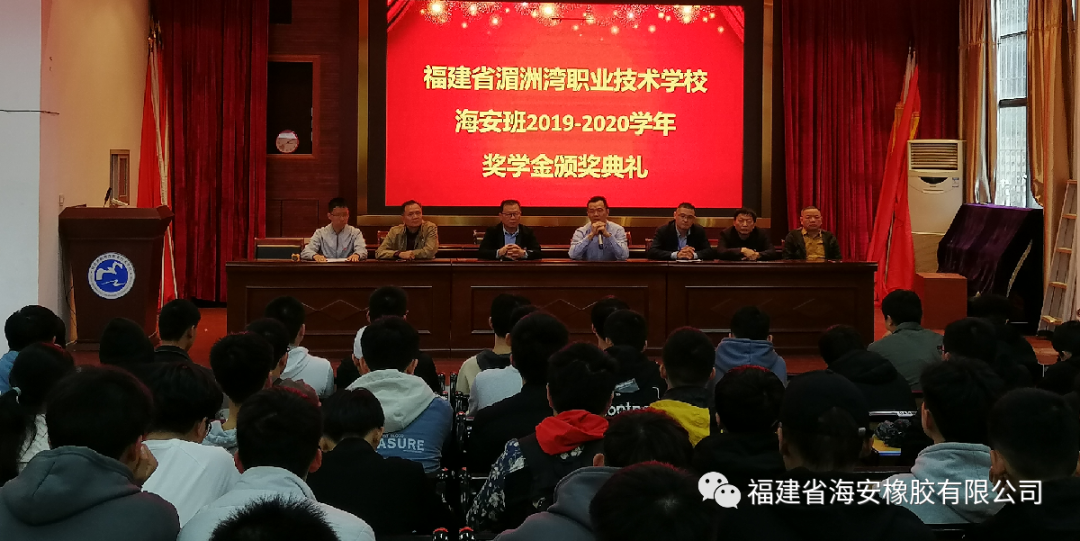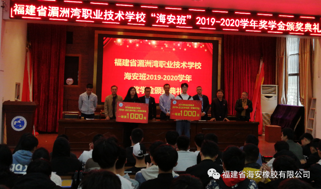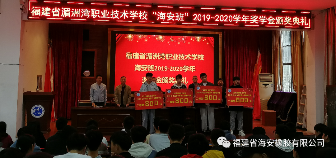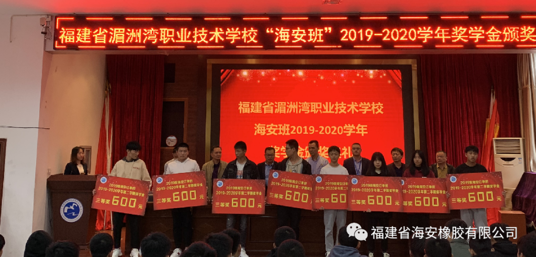 经过两年半的产学培育,并录取10名同学在海安公司就职。2020年12月8日下午,福建省海安橡胶有限公司与湄洲湾职业技术学校联办的“海安班”2019-2020学年奖学金颁奖典礼在湄洲湾职业技术学校综合教学楼109会议室隆重举行。福建省海安橡胶有限公司生产副总经理余兆福、管理部经理马自强和湄洲湾职业技术学校党支书、校长王友华、招就科科长陈福荣、教务科科长黄清新、机械系系主任苏志雄、机械系系副主任张宇出席颁奖典礼。