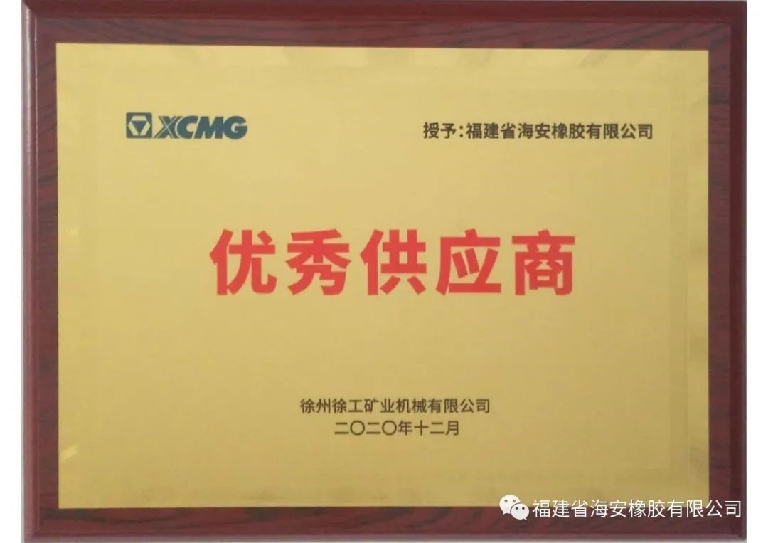 2020年12月18日至19日,以“共铸重器 共享未来”为主题的徐工矿机供应商年会在徐州隆重召开。会上,徐工集团授予福建省海安橡胶有限公司“优秀供应商”奖项!