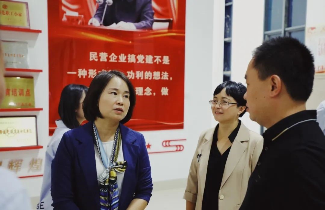 调研组一行深入海安集团,参观企业生产制造车间、妇女之家、图书室、职工健身活动等场所,详细了解企业女员工创业就业的历史沿革、集团专利和技术研发、特色党建工作以及海安集团妇联工作和女职工作用发挥情况,并现场进行授牌仪式。