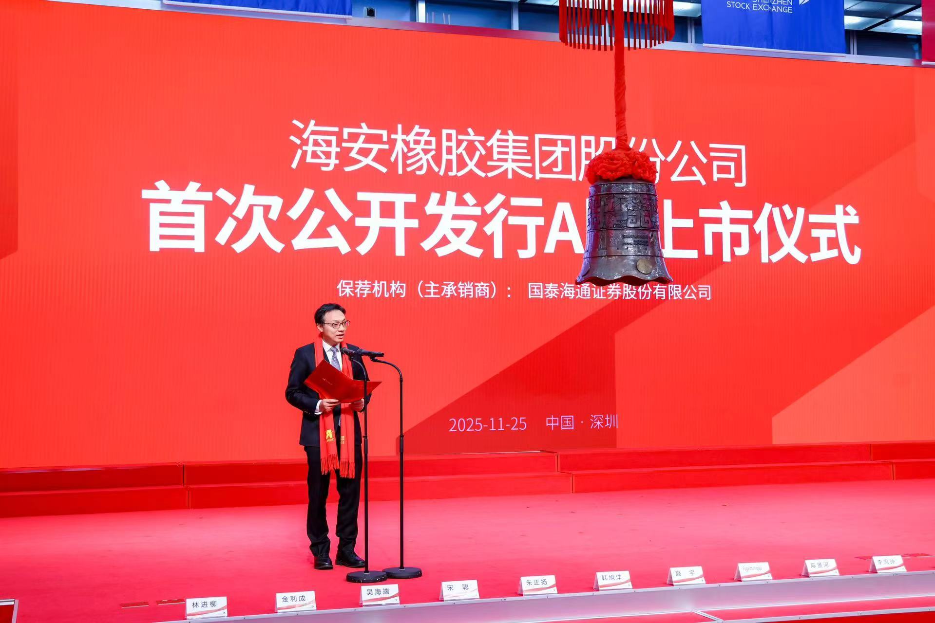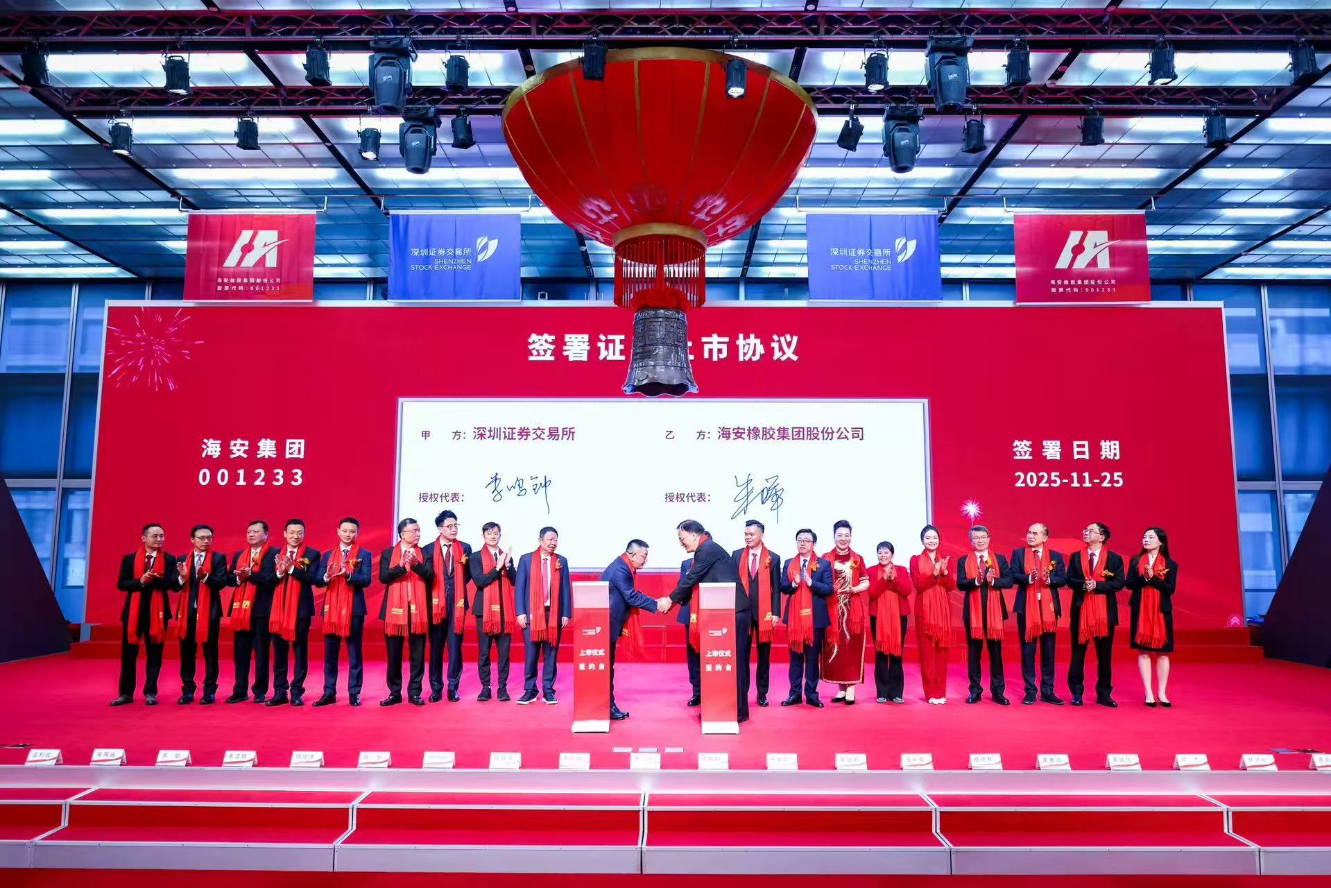 11月25日,伴随着响亮的上市钟声,海安集团(股票简称:海安集团,股票代码:001233)正式在深圳证券交易所主板挂牌上市。莆田市委书记付朝阳,紫金矿业董事长陈景河,江西铜业党委委员、执行董事喻旻昕,广纳煤业集团创始人王彩荣,印尼金光集团董事弗甘托·维贾亚,海安集团董事长朱晖,董事、执行总裁朱振鹏等领导嘉宾出席仪式并参与上市敲钟。此次上市标志着海安集团迈入"产业+资本"双轮驱动的新发展阶段,成为中国民族工业品牌在全球高端制造领域持续突破、稳健前行的重要体现。