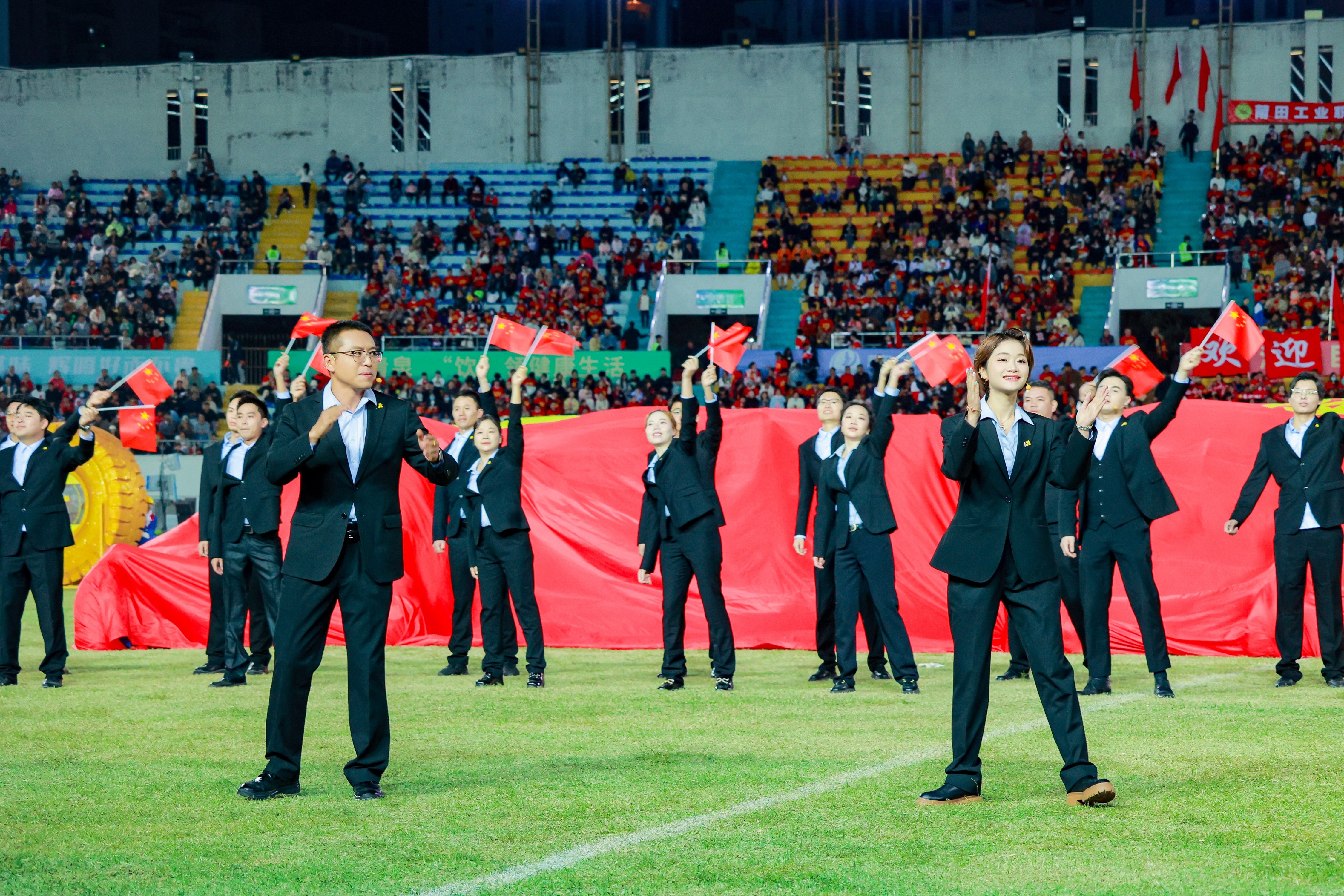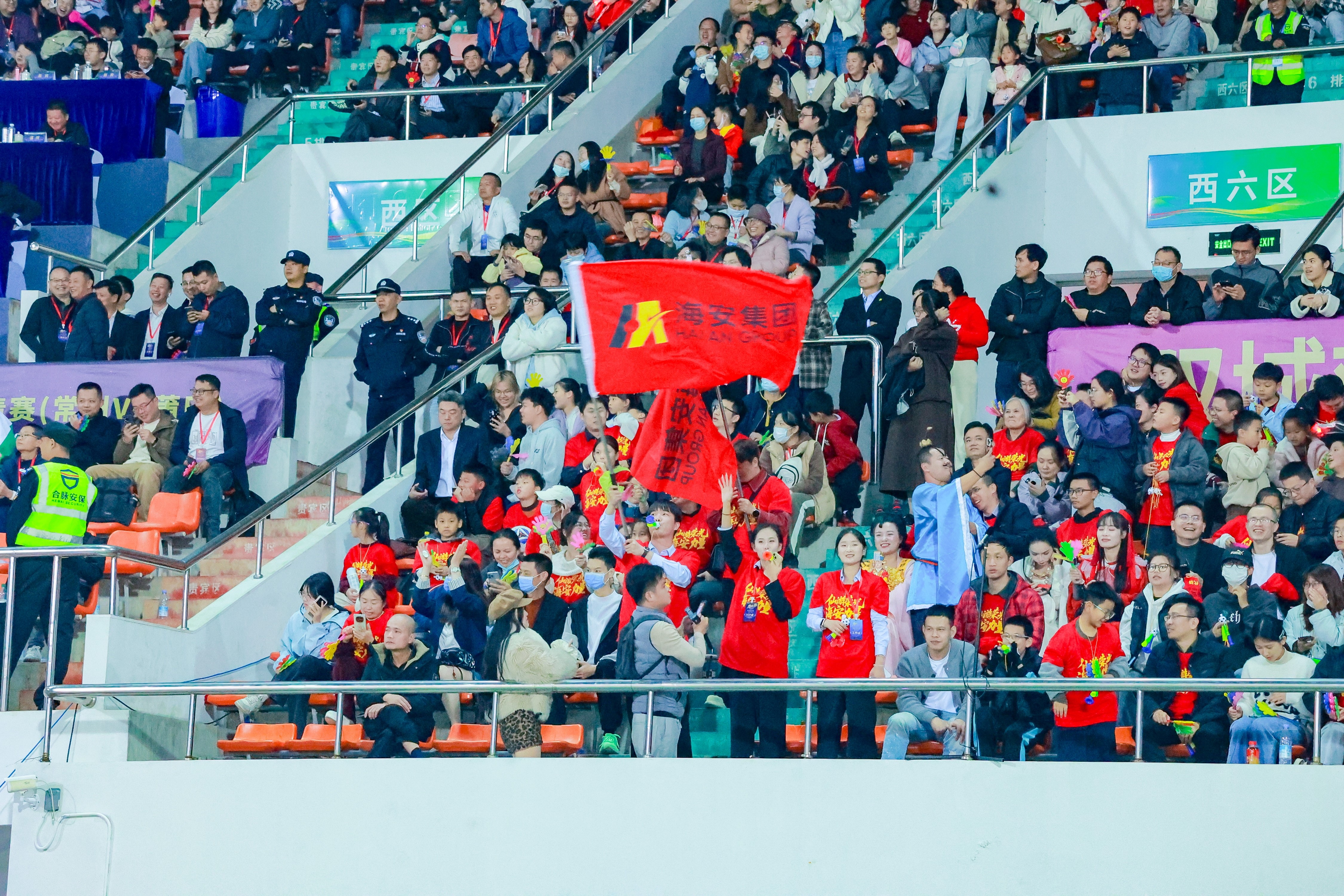 赛事开场,海安员工方阵以昂扬之姿唱响企业之歌《心向海安》。从 “海安青年,何惧风浪,创新为帆,向全球启航”的豪迈誓言,到Rap段“001233,有如江海浩荡”的上市代码自信,再到“海是吾乡,我归来时的爱”的在地深情,歌词生动勾勒出企业从莆田走向世界的奋斗轨迹。这场充满情感张力的开场表演,不仅点燃了现场气氛,更彰显出海安“初心似海,安定未来”的文化追求,为赛事注入深刻的精神内涵。