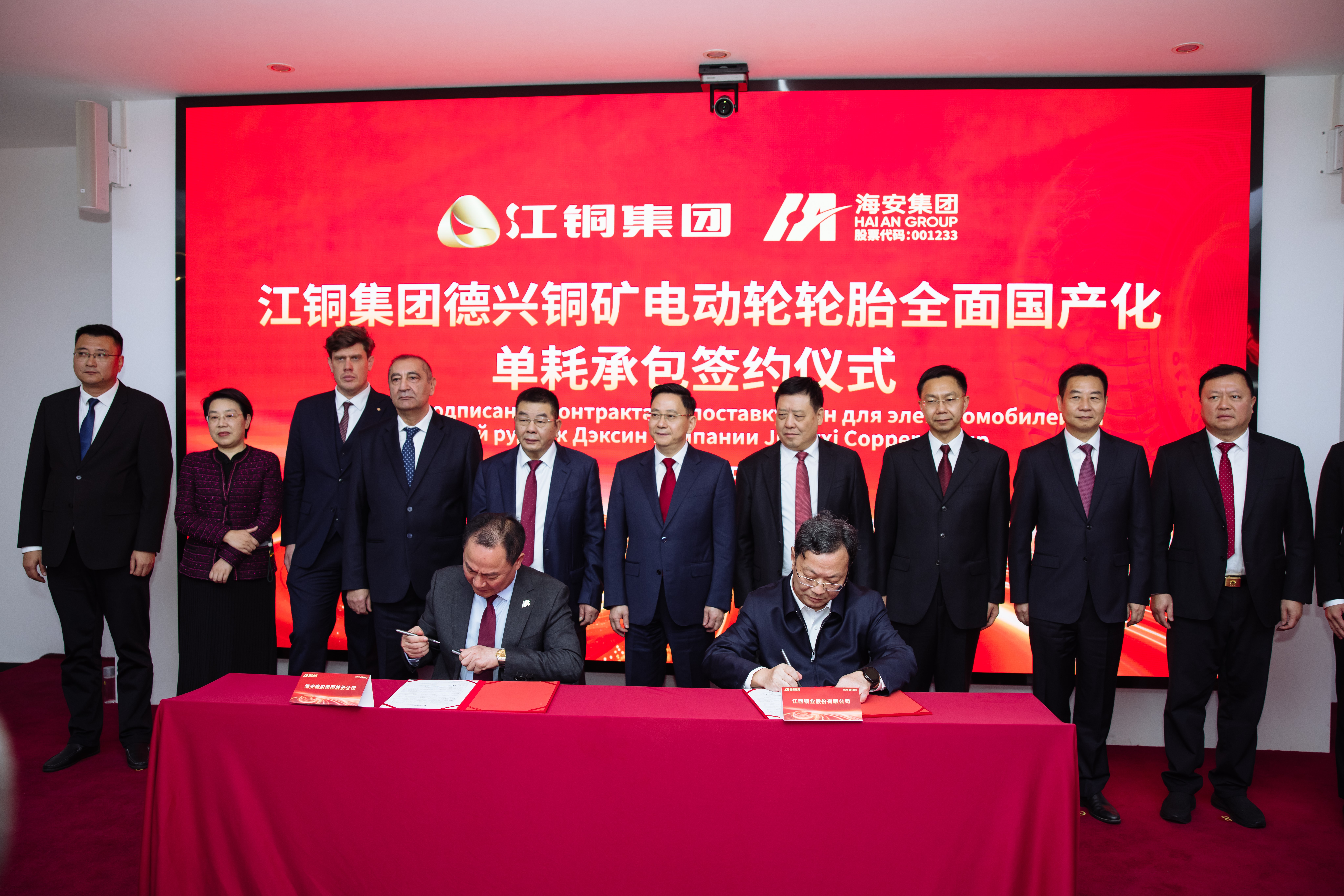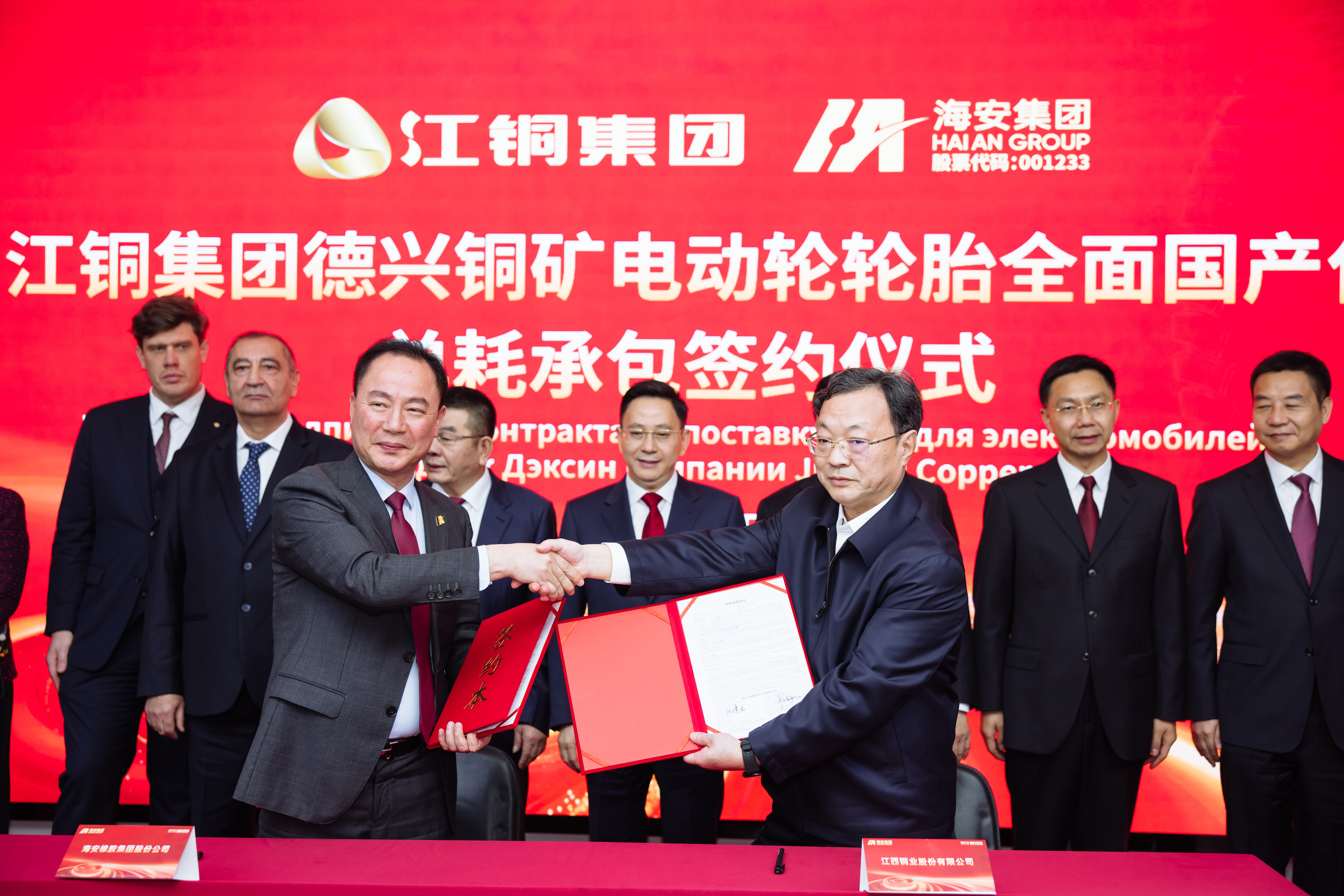 在持续推进国际化布局的同时,海安在国内市场亦取得重要突破。当日,海安与江西铜业集团在前期招投标程序基础上举行“德兴铜矿电动轮轮胎全面国产化单耗承包”签约仪式,江铜德兴铜矿将全面采用海安集团矿用巨型轮胎费用定额承包运营管理模式。此次合作标志着中国在全钢巨胎制造及服务领域实现历史性突破——国内铜工业领军企业首次将设备安全与运行效率的核心环节全面交托中国自主品牌,是双方对构建稳固、持久且具有深度协同效应的战略合作关系的深入践行。双方历经二十余年深度合作渊源,从技术服务站设立到联合研发碳纳米材料应用,逐步实现产品全面国产化,展现了海安集团在复杂工况下的技术实力和持续创新能力。