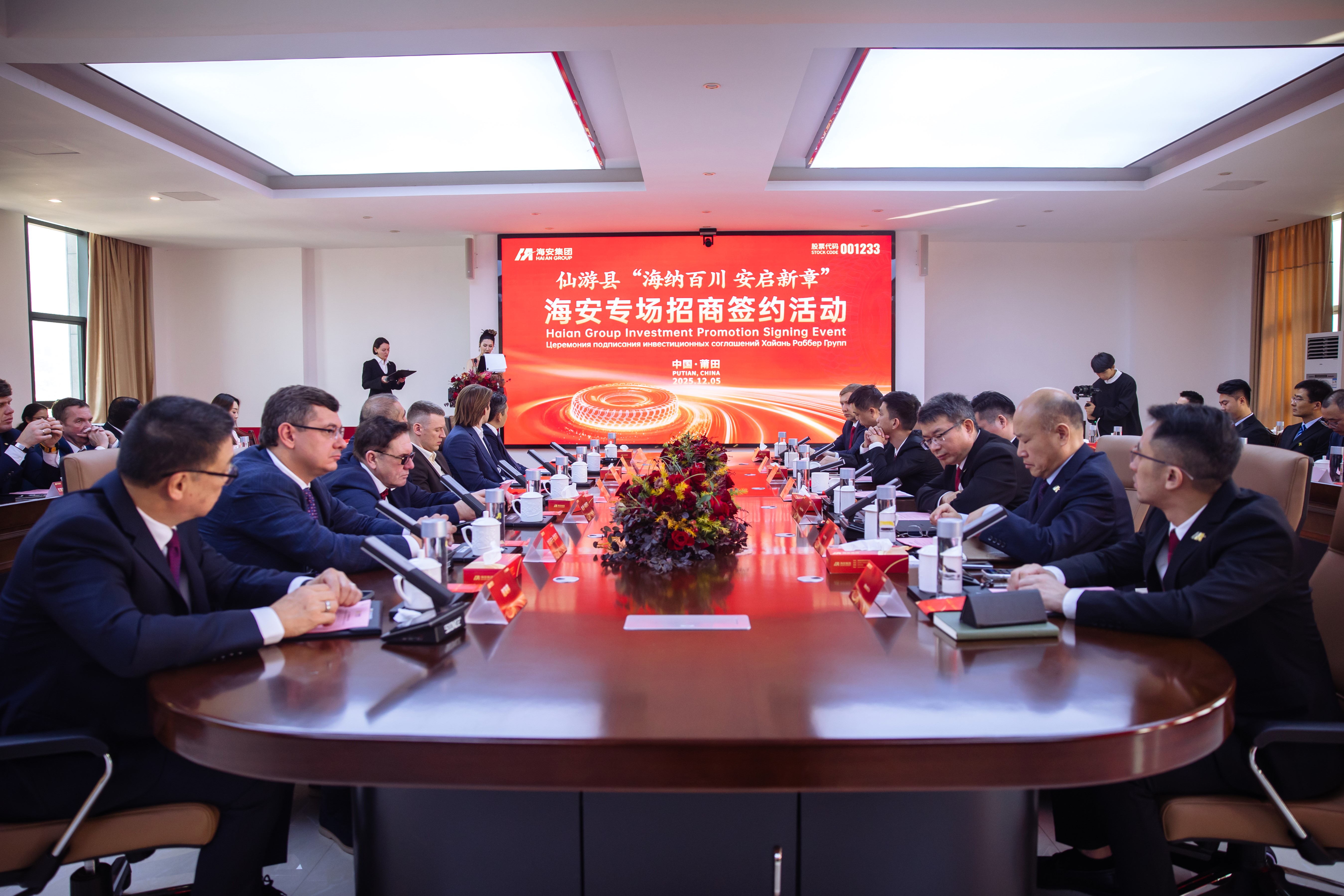 在全球化加速推进的背景下,海安集团以持续创新的产品实力和不断强化的国际影响力,于12月5日顺利举行系列重要签约仪式。本次签约不仅是海安在深交所上市后的又一重要里程碑,更是企业国际化战略布局落地实施的重要标志,展现了海安在全钢巨胎领域不断突破、走向世界的坚定步伐。莆田市委书记付朝阳、市长戴龙成、市人大主任苏永革、市政协主席沈萌芽、市宣传部长陈惠黔等政府领导出席当日签约仪式。