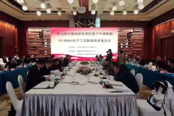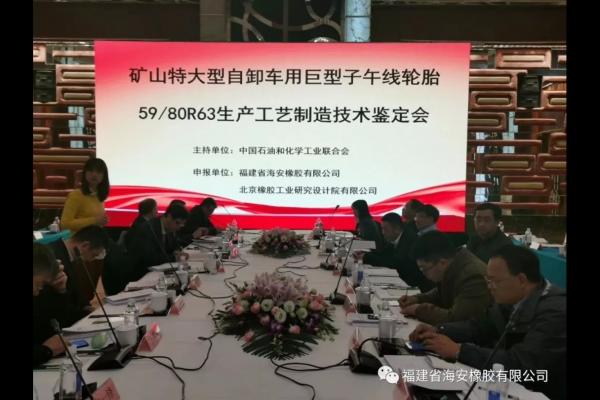 近日,中国石油化学和工业联合会在北京组织对福建省海安橡胶有限公司与北京橡胶工业研究设计院有限公司联合研制的“矿山特大型自卸车用巨型子午线轮胎59/80R63 生产工艺制造技术”进行科技成果鉴定。