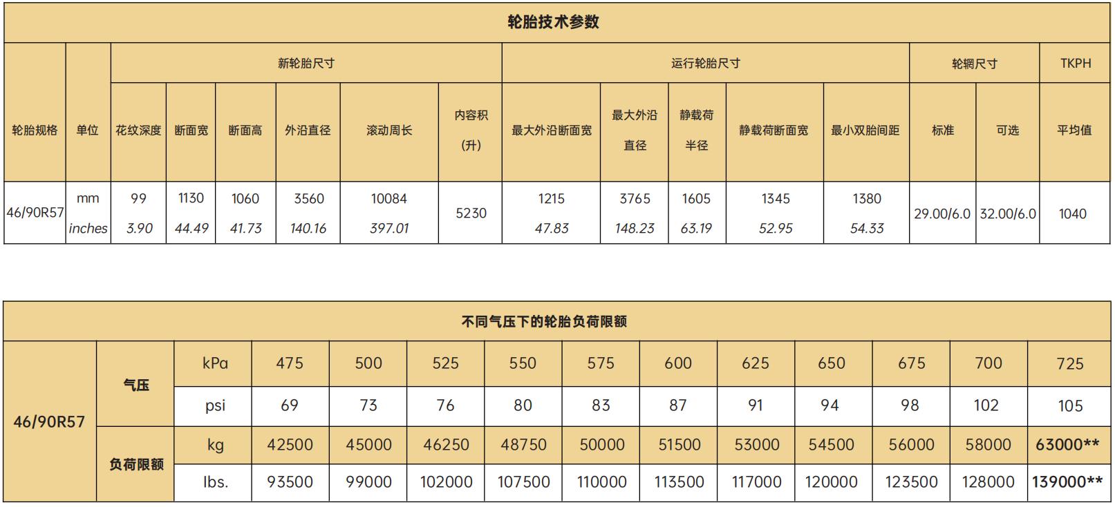 2.胎面柔韧性好,轮胎的TKPH值较高,耐热性好;